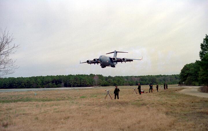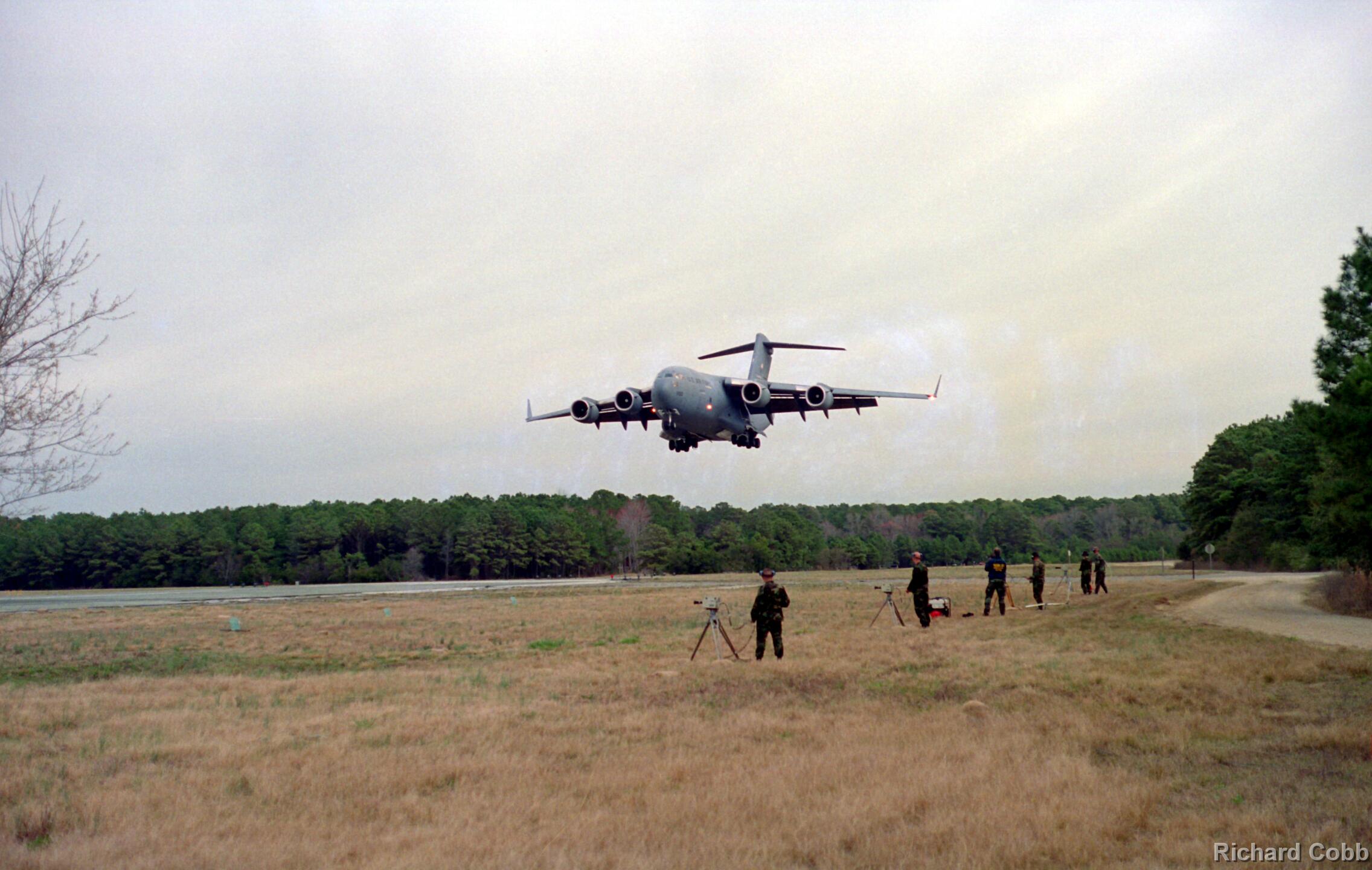 These photos were taken while working for NKF Engineering in March 1995. I was at Bogue Field, North Carolina to install accelerometers in a portable landing strip and record the data for multiple C-17 (Globemaster) landings. This data was to be used for analysis by another engineering firm to determine movement between the landing strip panels when a C-17 landed.