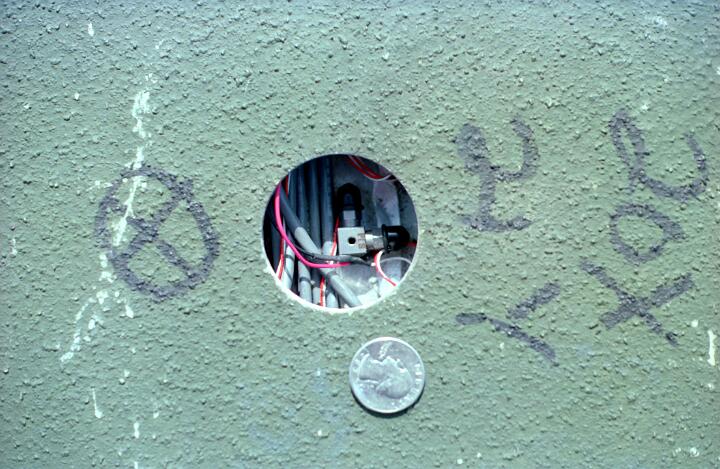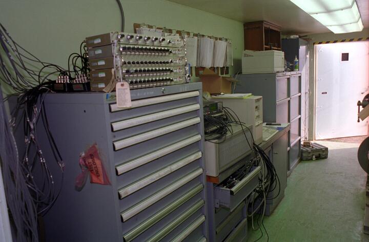 The panels were hollow, and cabling was run inside of the panels. Holes had been drilled in the upper surface at selected locations through which small accelerometers could be installed. Over 50 channels of data was recorded to digital tape. Installing the accelerometers, connecting the cabling and calibrating each accel required between 3 and 4 days, followed by 2 days during which there were multiple C-17 landings and takeoffs