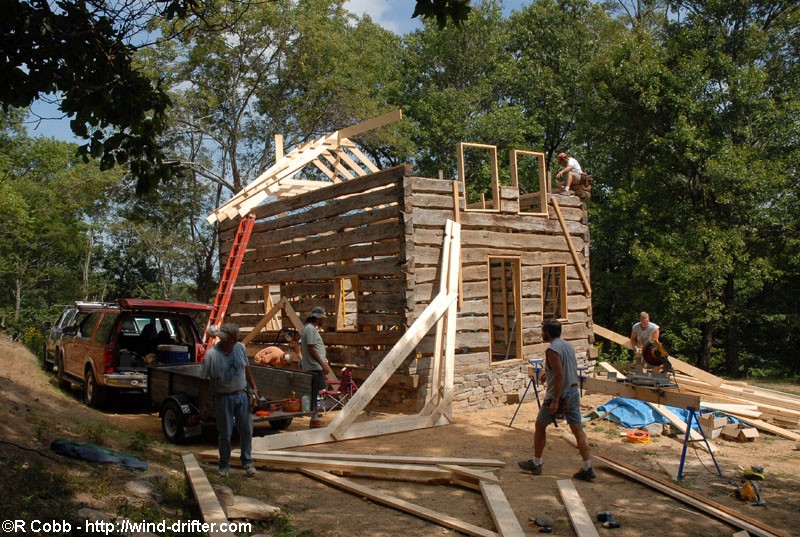 September 15, 2008 - Today was Monday, and the crew was down to just four of us. After the spectacular gains of yesterday, most of this day was putting on finishing details, like lagging down the plates and putting in blocking between the rafters.