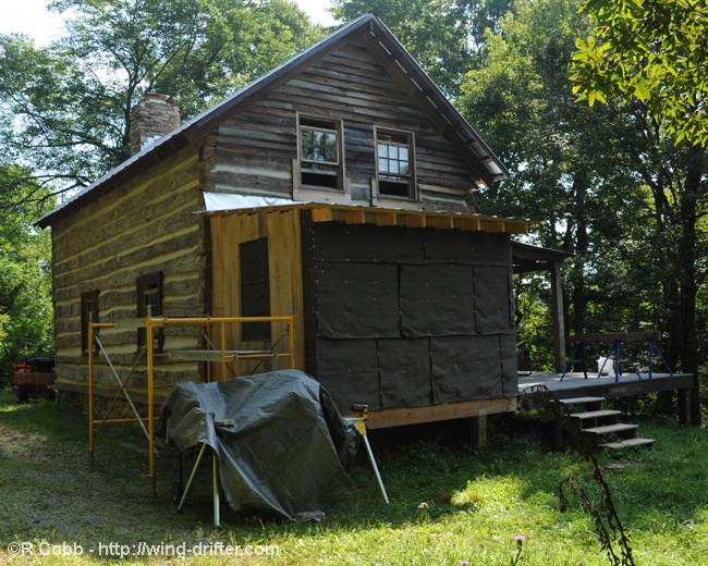 Much of 2015 was busy for Steve in ways that did not involve the cabin, so there were no major work sessions - he fit in a few days here and there as he could. By August he had the tar paper up on the bathroom addition and was working on the siding.