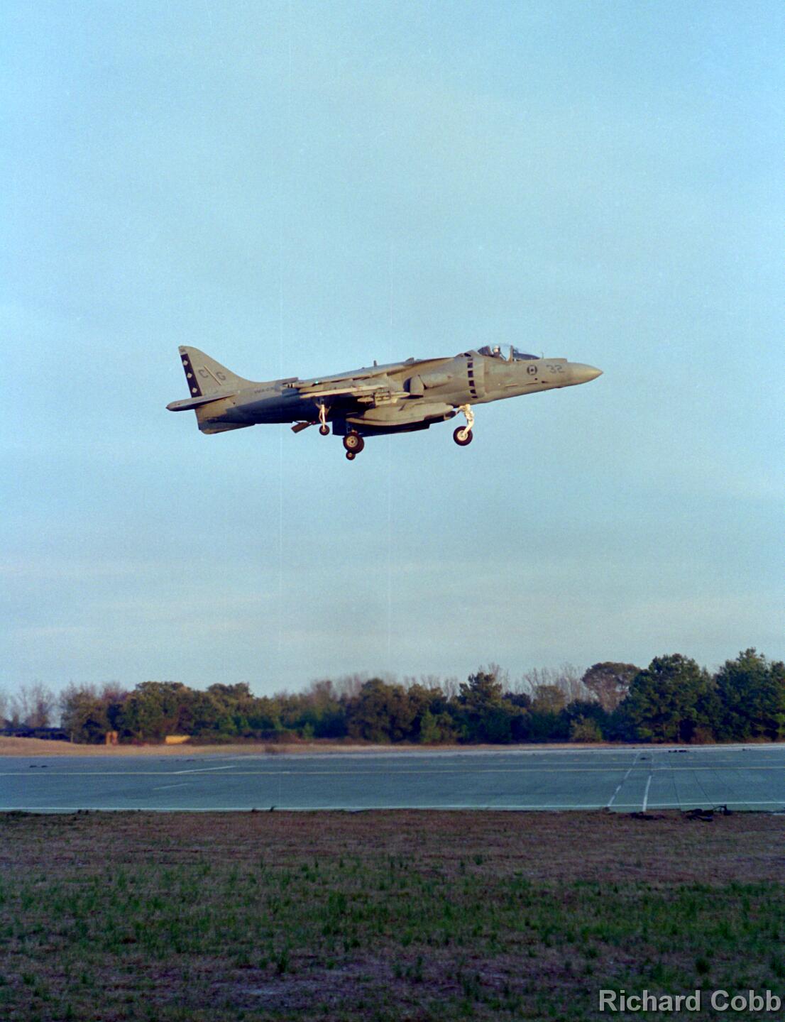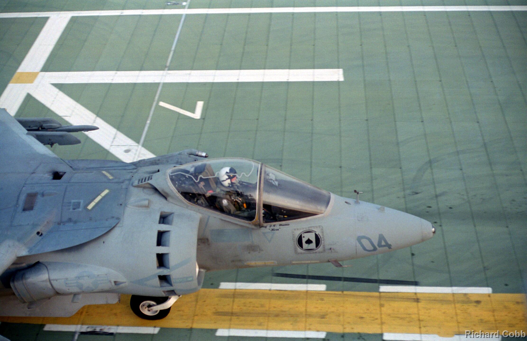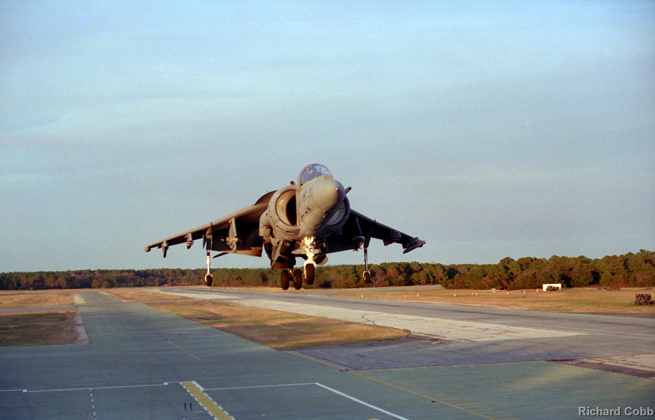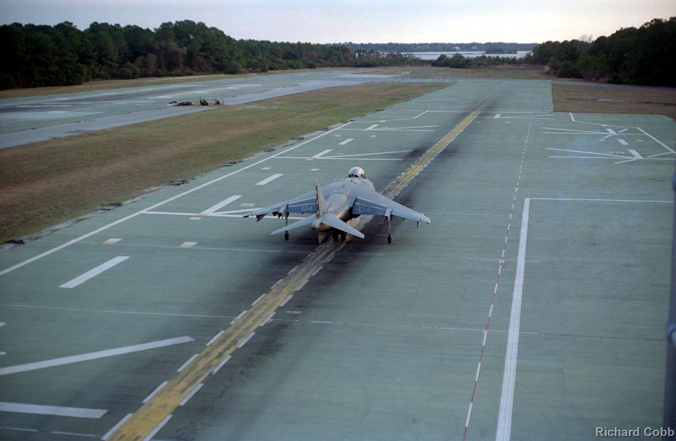 Harrier operations were being conducted during one of the days, and the Harrier photos were taken from a small, portable control tower that had a walkway around the outside. For some of the photos the Harriers were so close that the noise, heat, and kerosene (jet fuel) smell were almost overpowering. Even with double hearing protection (ear plugs + ear muffs) the sound levels were uncomfortably high. But it is very strange to see a jet aircraft hovering stationary just a few feet away from you!