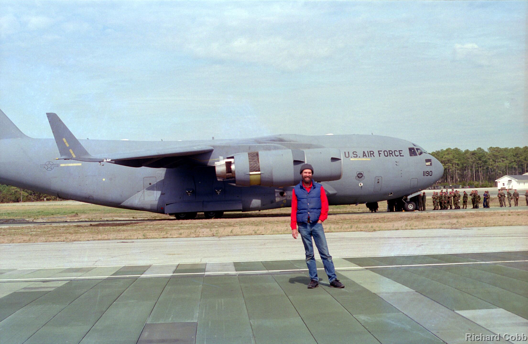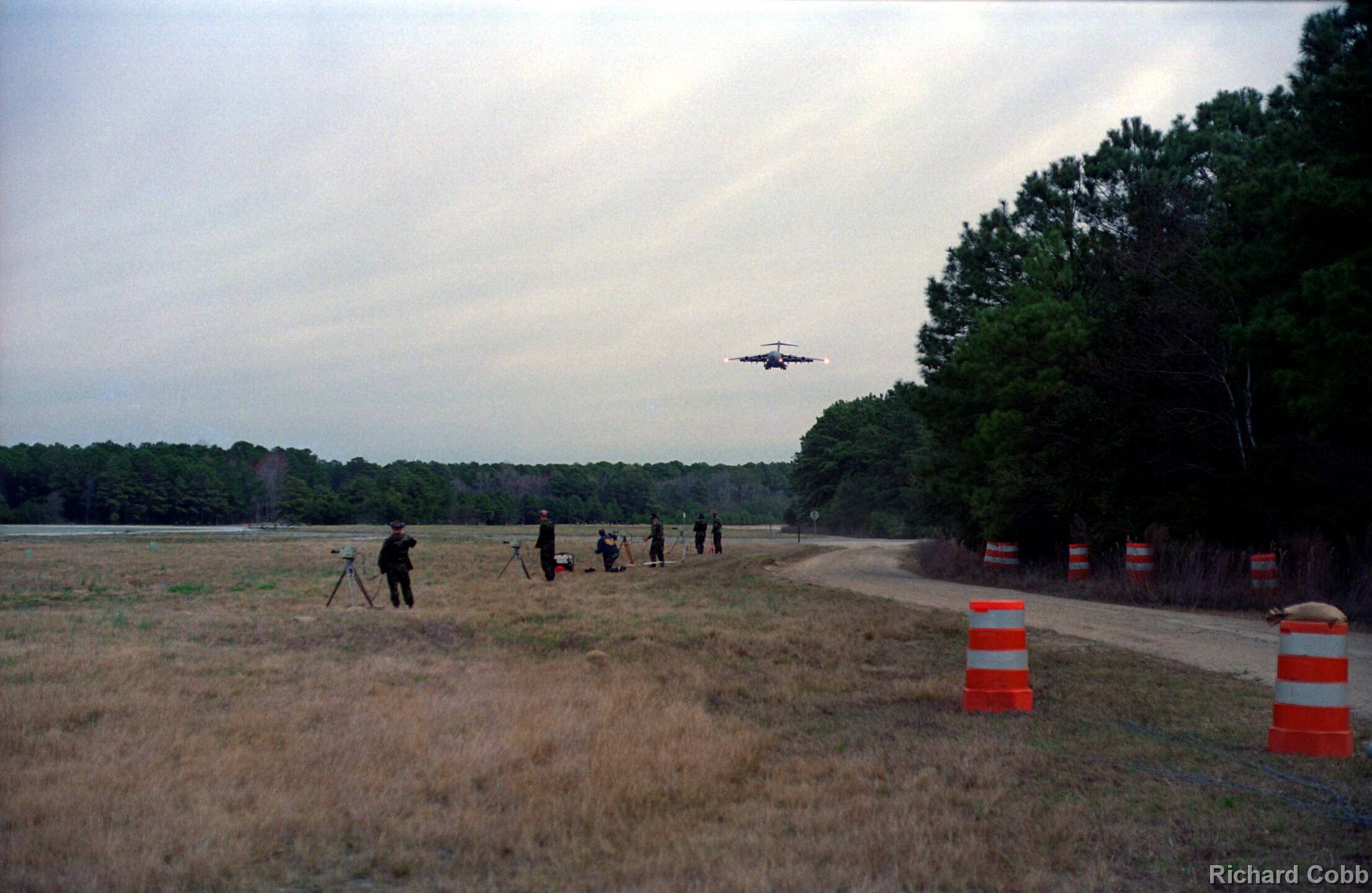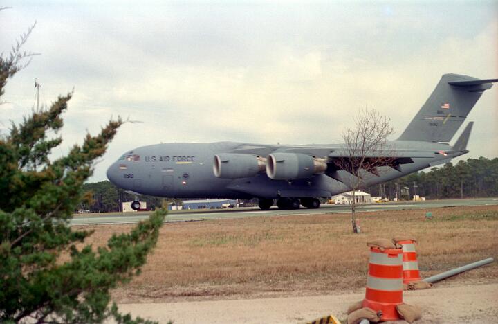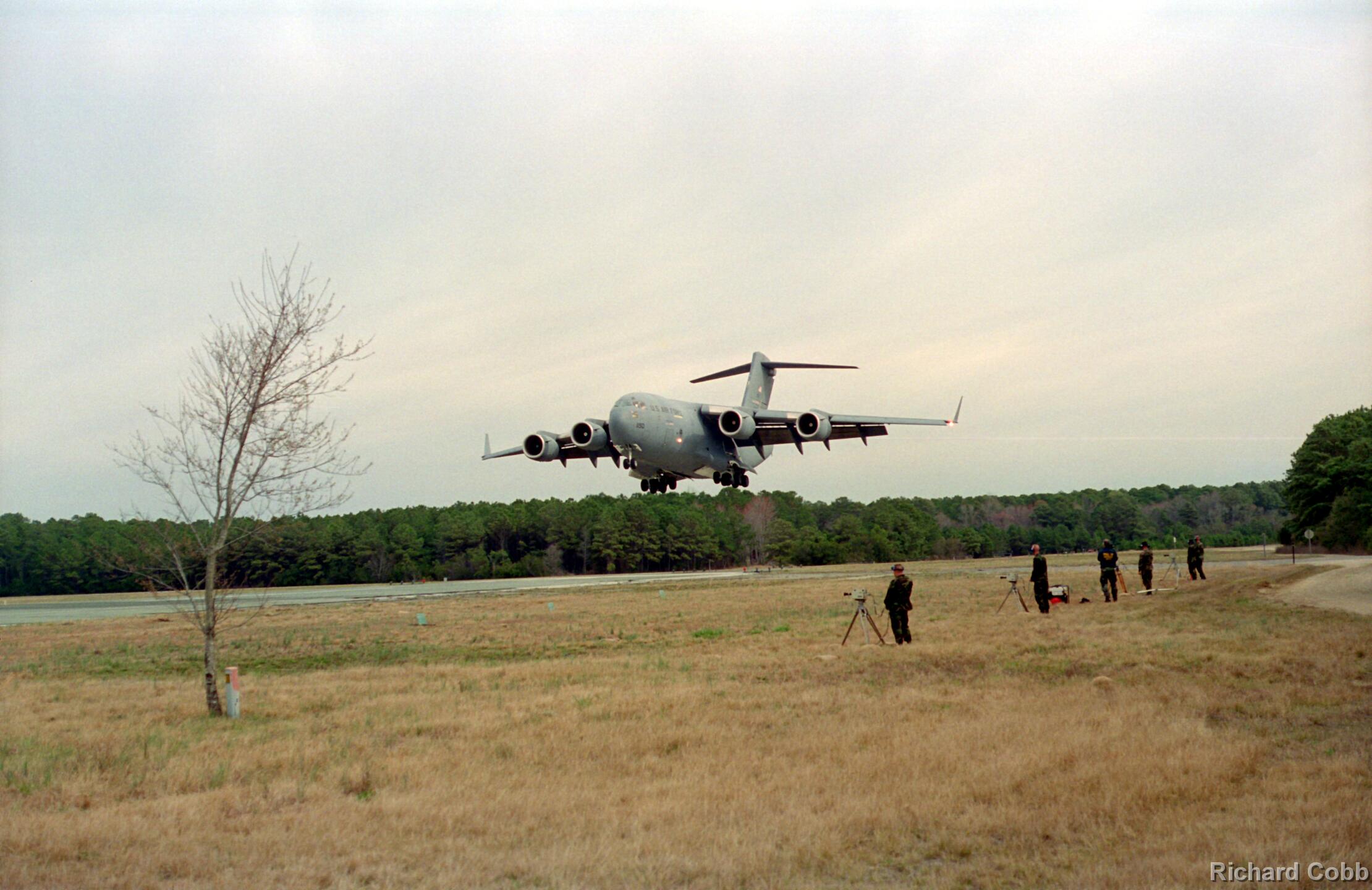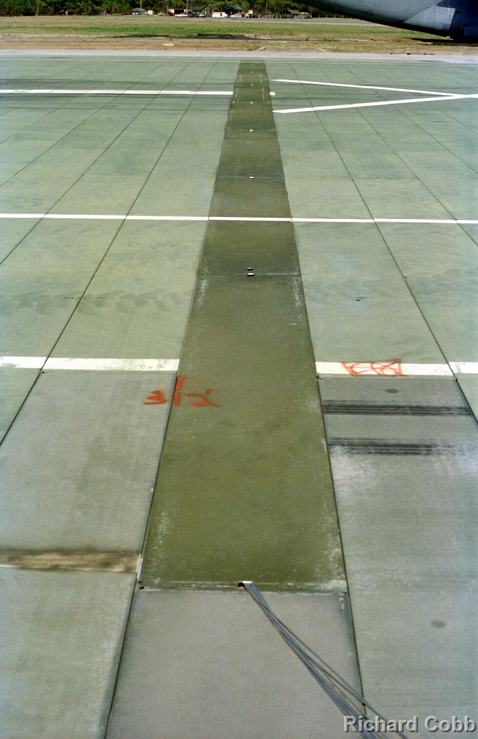 These photos were taken while working for NKF Engineering in March 1995. I was at Bogue Field, North Carolina to install accelerometers in a portable landing strip and record the data for multiple C-17 (Globemaster) landings. This data was to be used for analysis by another engineering firm to determine movement between the landing strip panels when a C-17 landed.