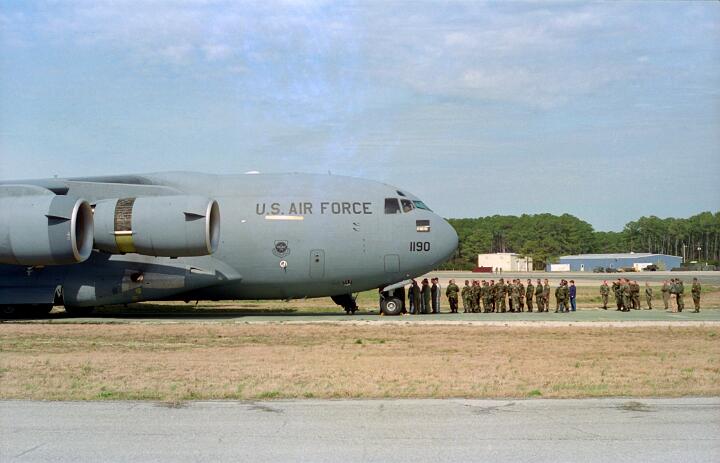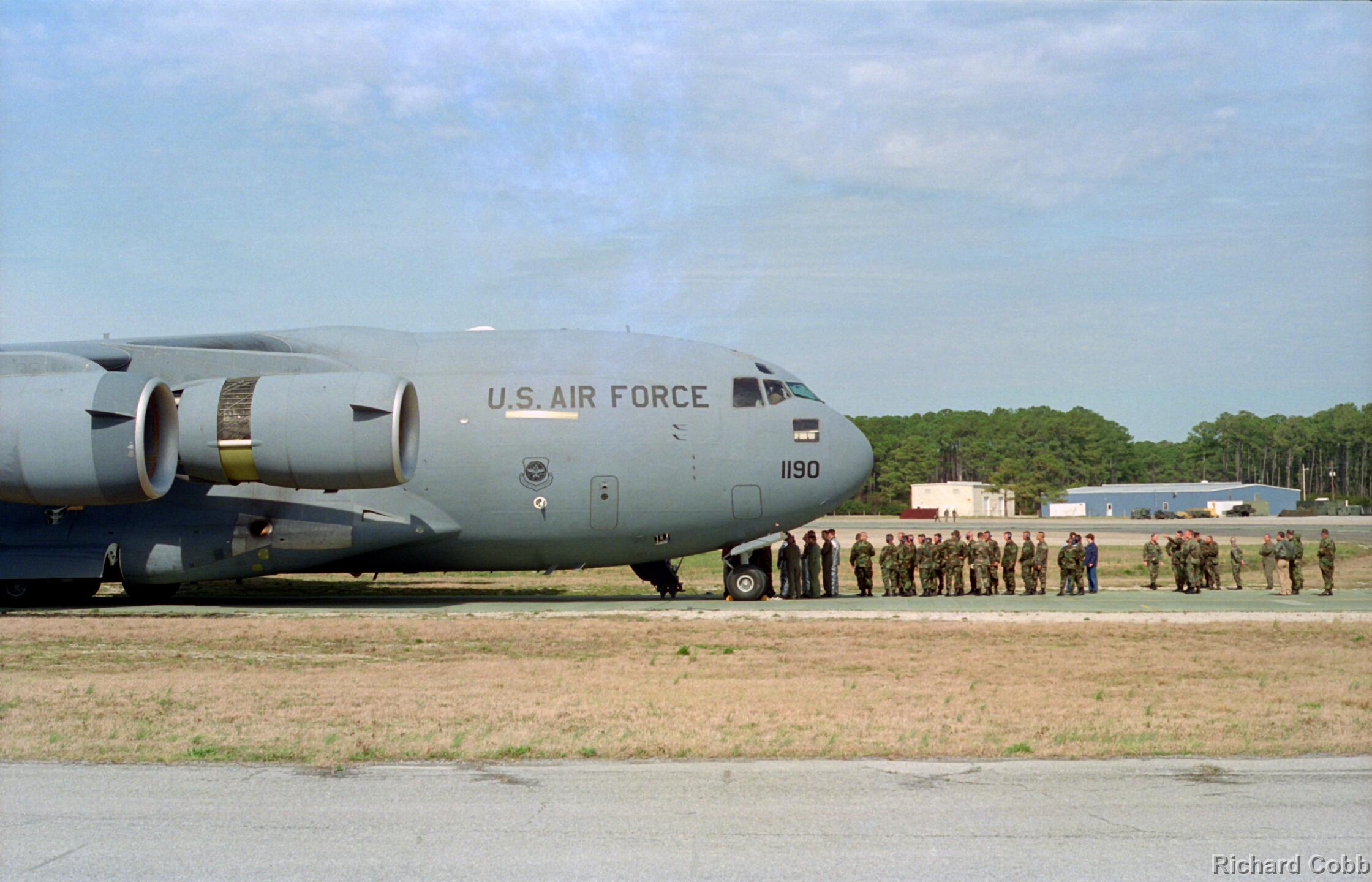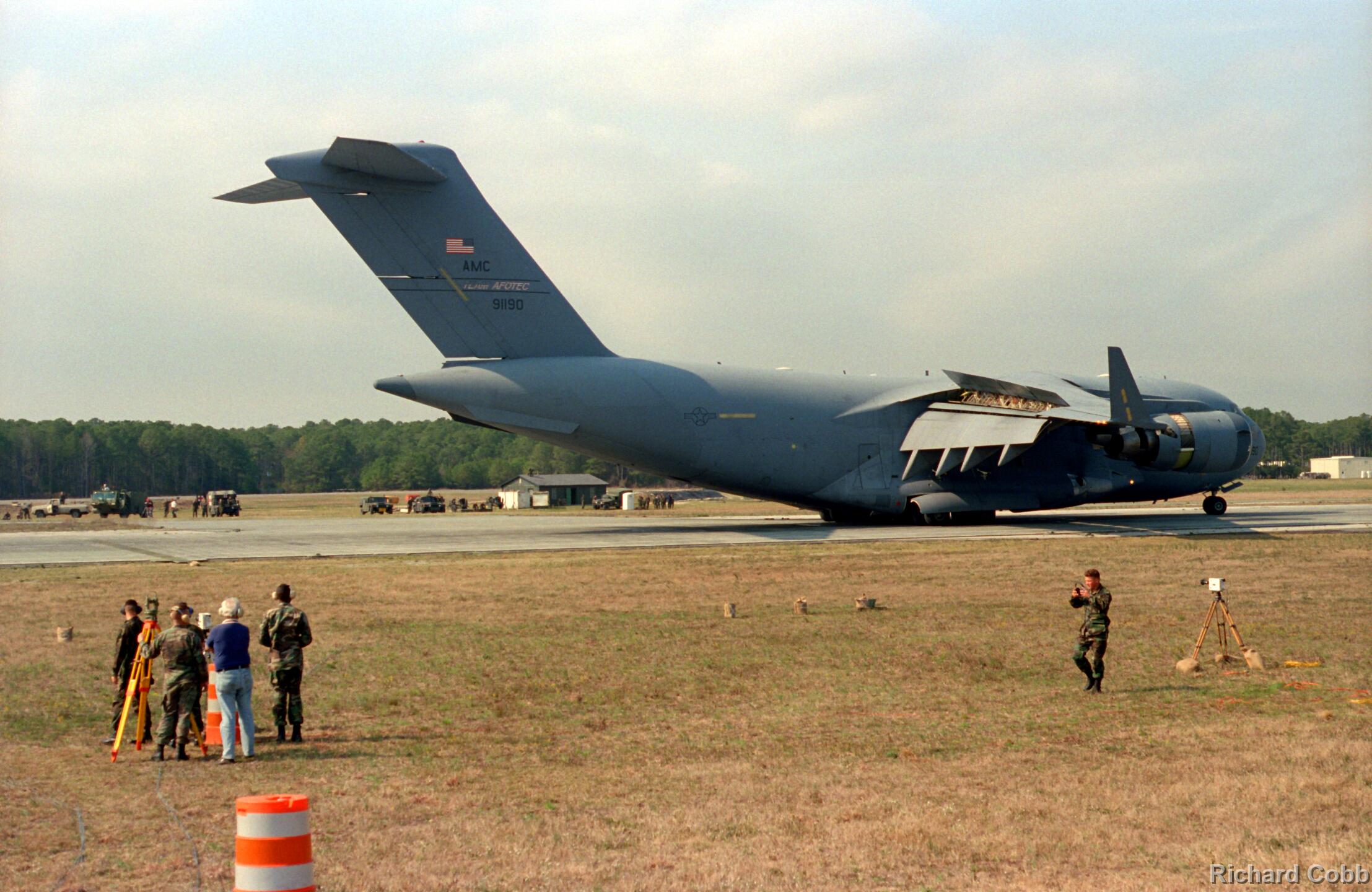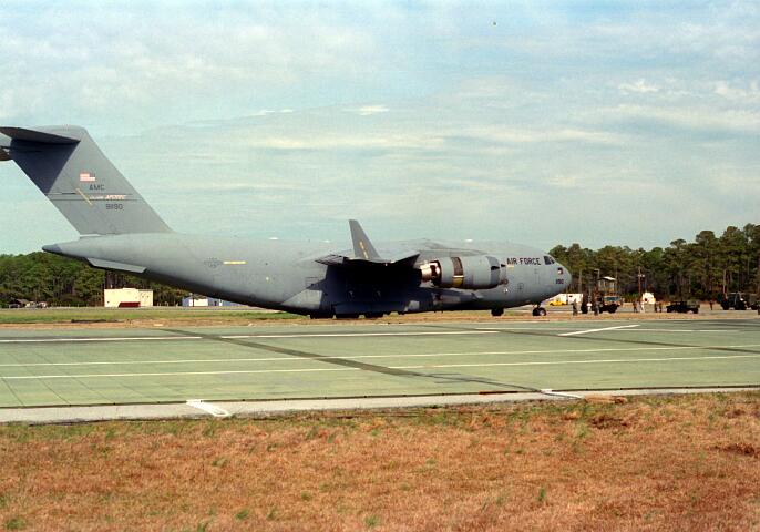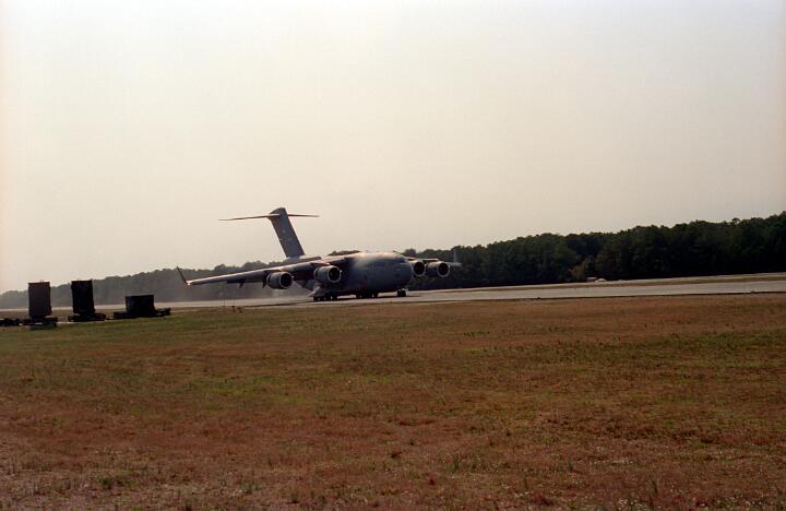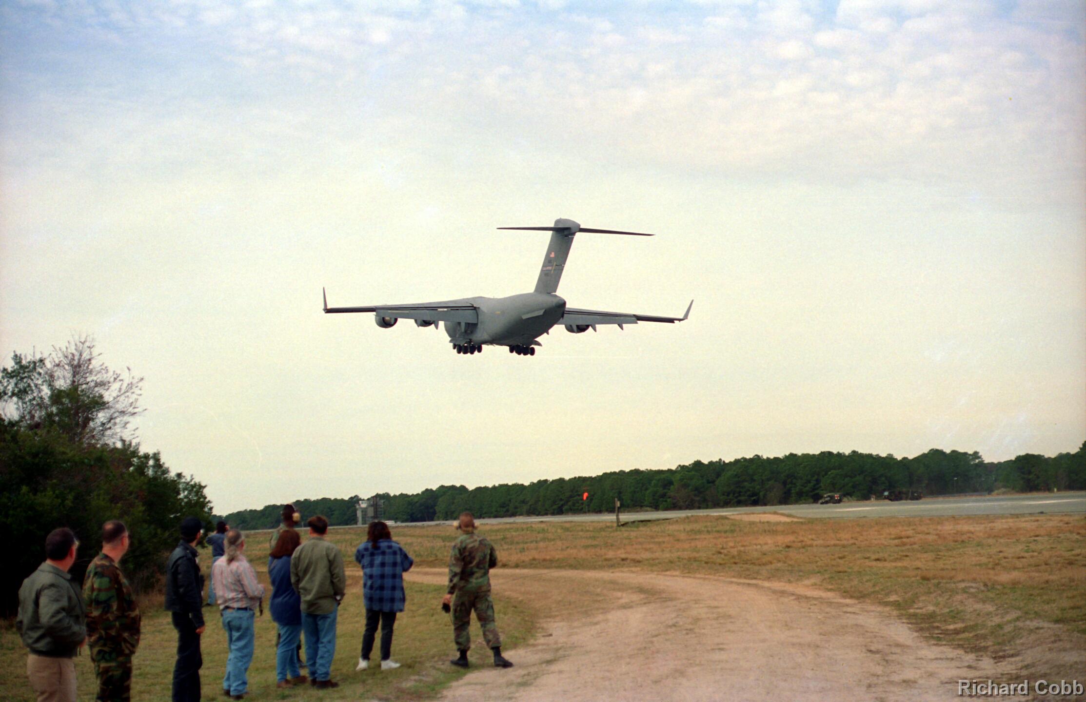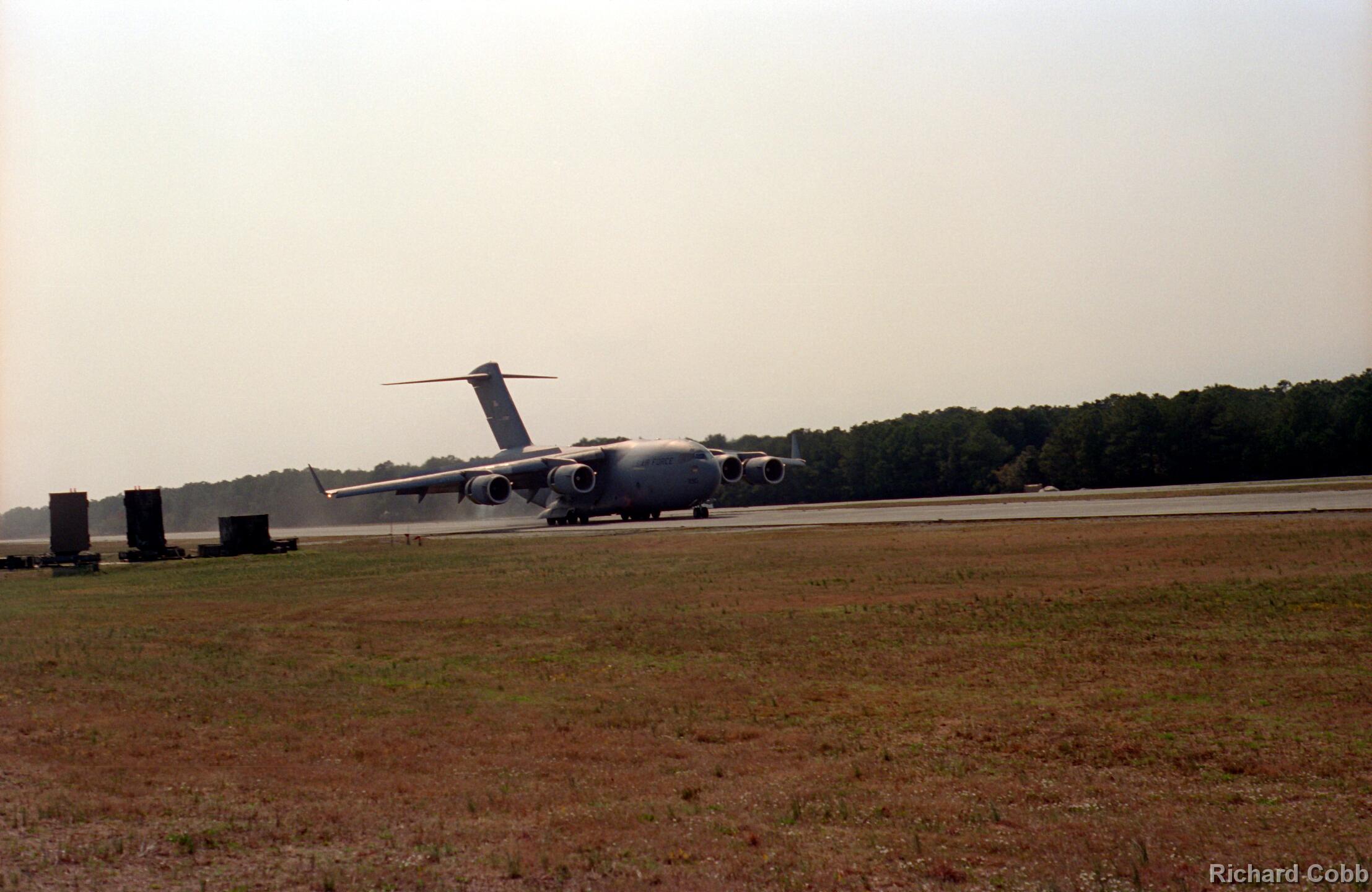 These photos were taken while working for NKF Engineering in March 1995. I was at Bogue Field, North Carolina to install accelerometers in a portable landing strip and record the data for multiple C-17 (Globemaster) landings. This data was to be used for analysis by another engineering firm to determine movement between the landing strip panels when a C-17 landed.